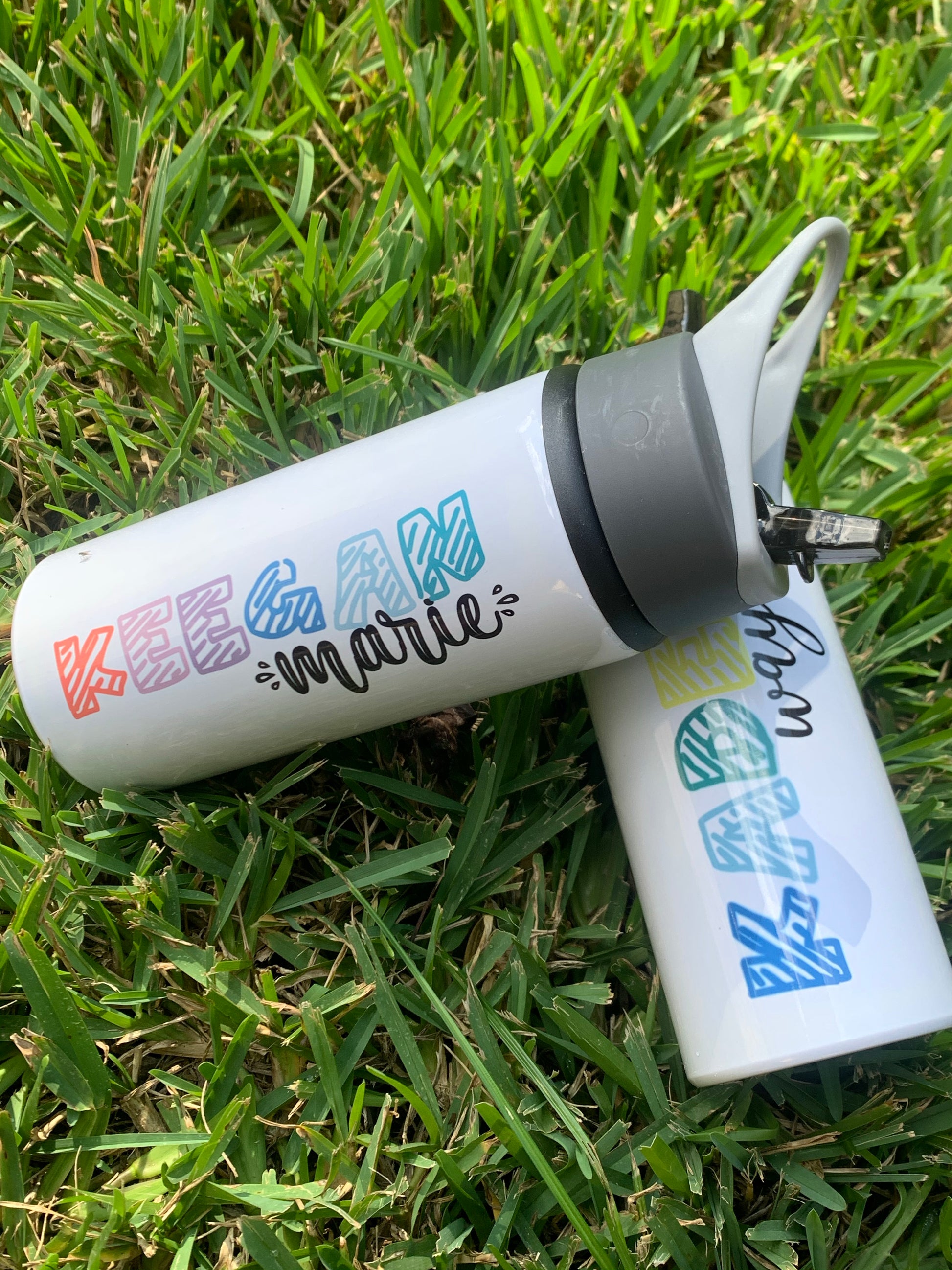 This insulated water bottle is perfect to send to school with the kids or toss in a gym bag. It fits in a cup colder and has a flip top lid with built in straw.