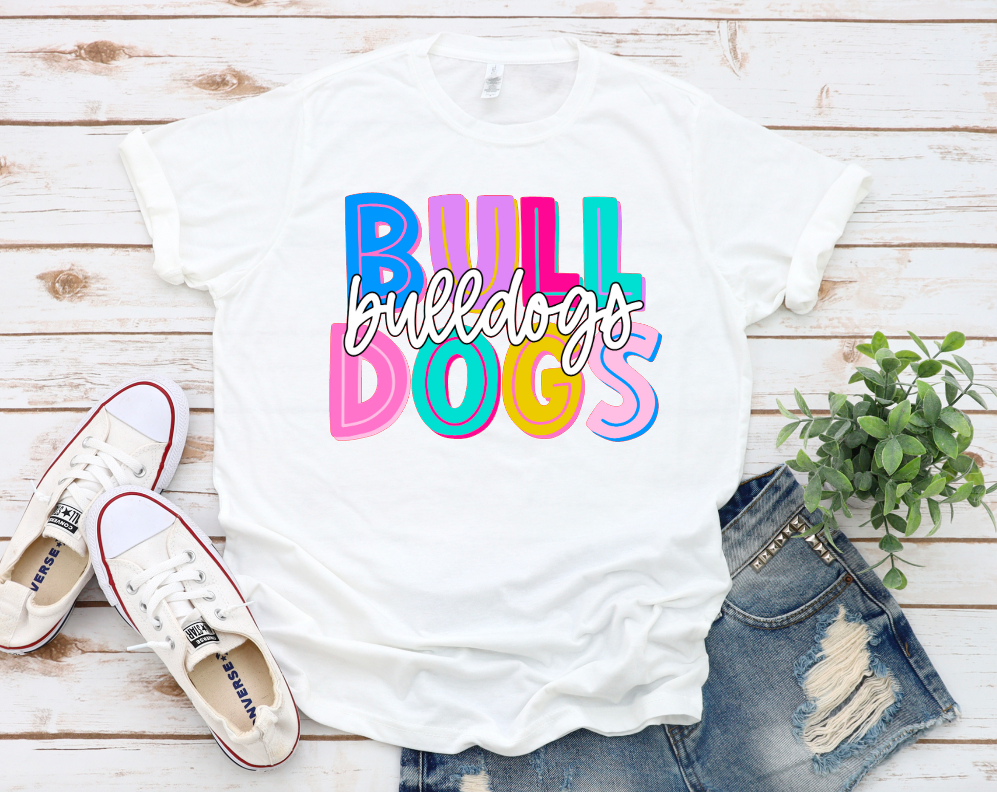 Bulldogs neon retro can be printed on any color shirt. Unisex sizing youth - adult.