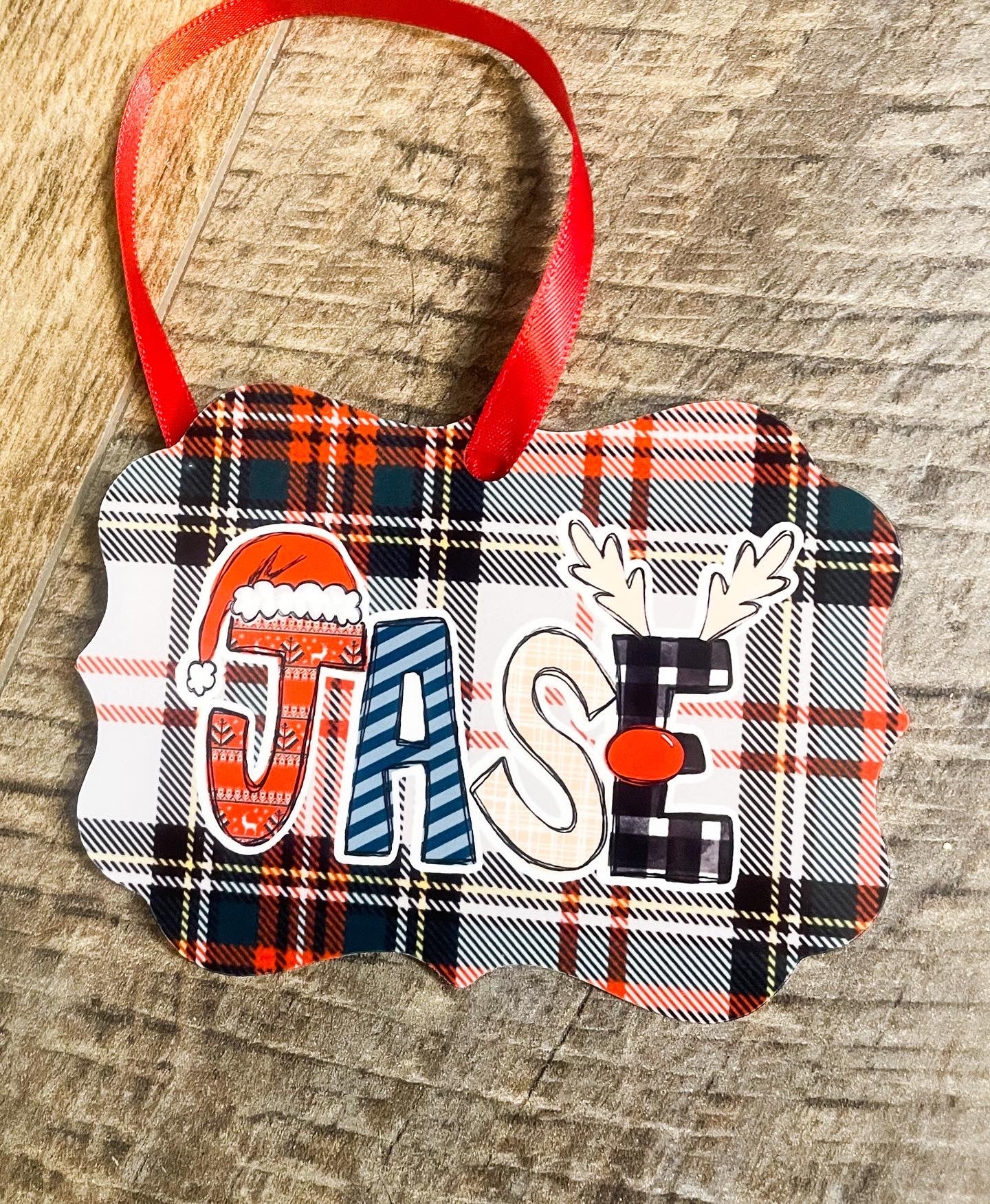 Christmas Monogram Alphabet Ornament || Aluminum Scalloped Ornament