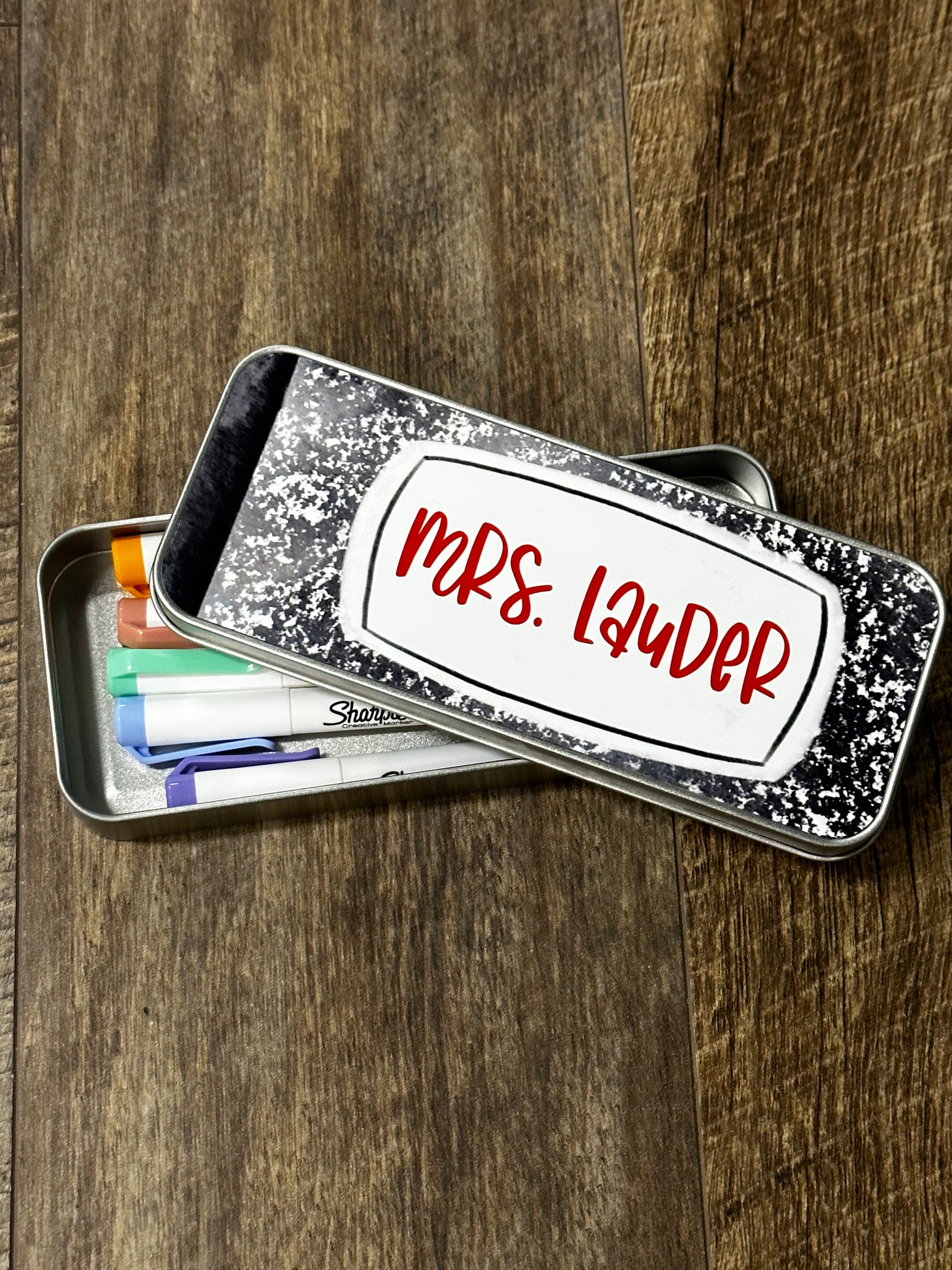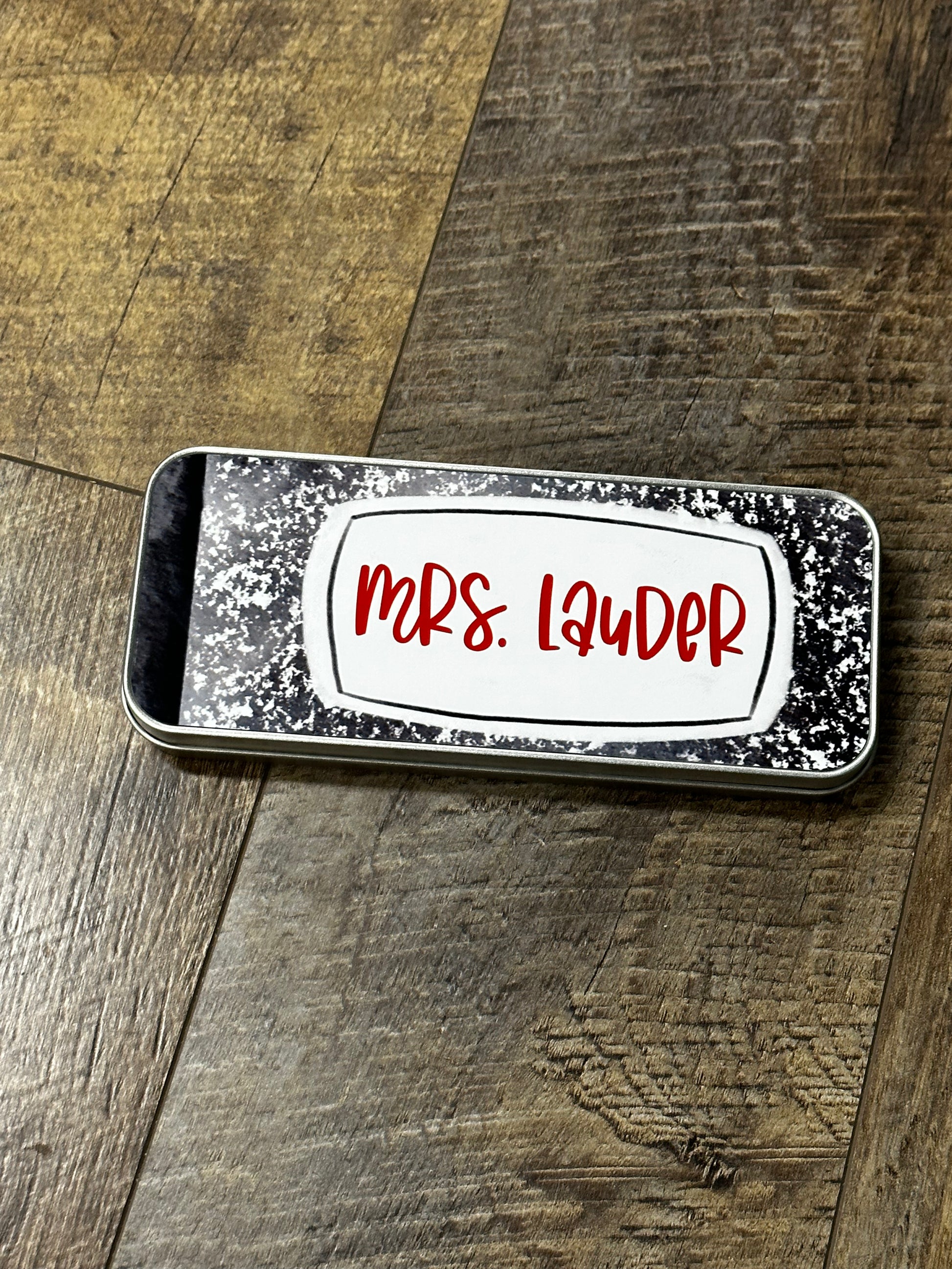 Pencil Box || Teacher or Student Kids Pencil Tin Composition Book