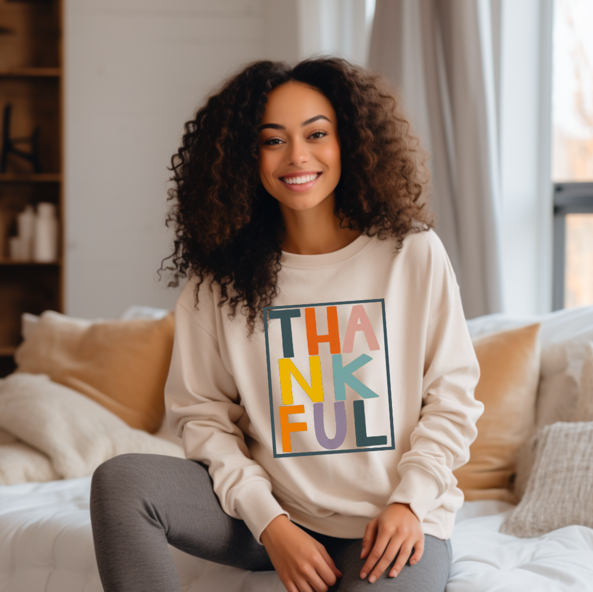 THANKFUL Stacked Print || Thanksgiving Fall Printed T-Shirt or Sweatshirt
