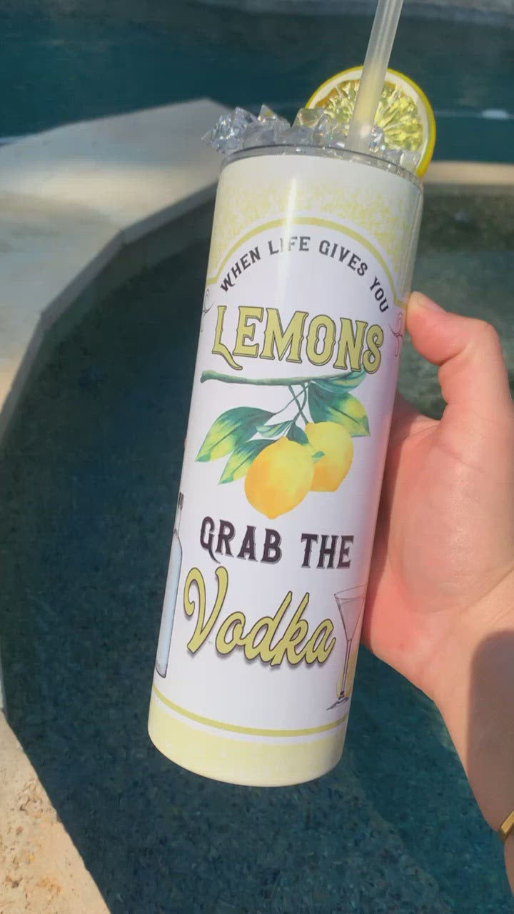 This tumbler has a decorative lid with either lemons or limes and ice. Gentle hand wash only! Your choice of design.